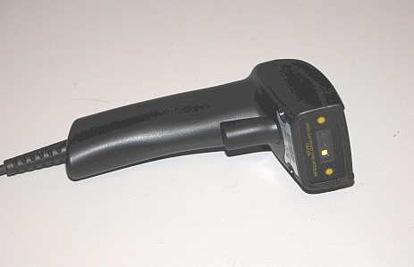 バーコードリーダーは安価に入手できるもので充分です。以下写真に示すバーコードリーダーは、コンピュータアクセサリとしてオンラインショップなどで安価に入手できます。